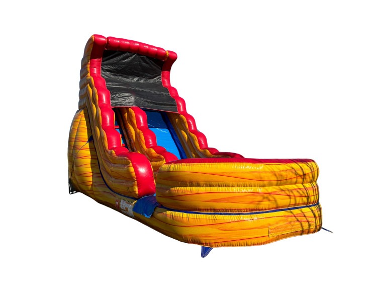 The 18' Volcano Single Lane Slide is an eye catching slide that brings fun to any event. Designed with a volcanic color scheme and a single sliding lane, it offers a straightforward ride that feels exciting from start to finish. Its 18-foot height gives it a dramatic presence, making it a standout attraction for birthdays, school events, church gatherings, community celebrations, and other outdoor parties where guests want something memorable and fun. This slide is a great choice for adding action, color, and a splash of adventure to your event lineup. This slide includes: